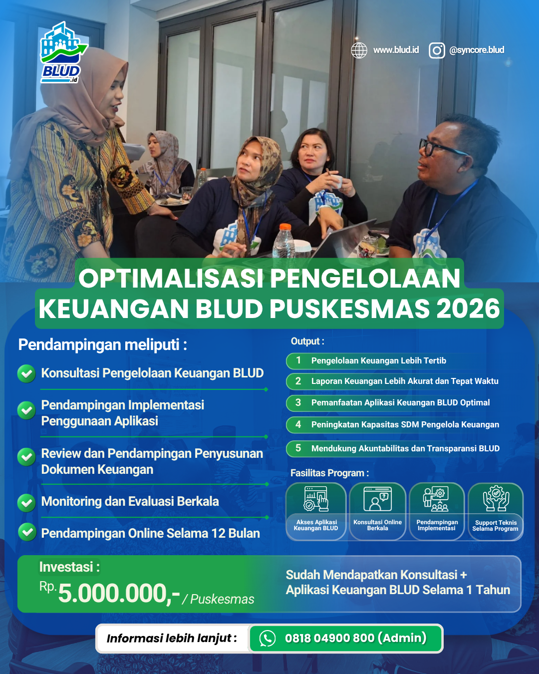 • Pendampingan Jarak Jauh Online (PJJO) selama 1 tahun dalam penyusunan RBA, penatausahaan keuangan, dan penyusunan laporan keuangan BLUD.